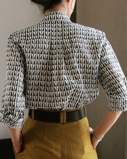 As you may have gathered from my feed, I don’t wear much print. I’m very very picky about the sorts of prints I like, so I usually stick to textured solids. But when fabriclore.com reached out to ask if I would be interested in trying one of their fabrics, I saw this incredible printed cotton and I immediately fell in love with it: the print reminds me so much of Twin Peaks, while also being reminiscent of the outrageous printed shirts everyone wear on the Sopranos - what else could I ask for? :’) It’s a hand block printed cotton with a very crisp yet airy feel. Since it’s printed by hand, there are some natural imperfections in the print, making it a little challenging to achieve a perfect pattern-matched look. I aimed to match the front and left pretty much everything else to chance, and ended up with near perfect results by accident! I even got a matching sleeve placket out of it! It was the luckiest sewing day ever :’) The pattern I used is my new favourite shirt pattern, the MS Classic Shirt by The Modern Sewer (currently up to a 113 cm / 44.5” bust with an expansion on the way). Just like the first one I made, I made a size 10 everywhere except the neckline & collar, which I cut in a size 6. The body is shortened by 5 cm / 2”, but I forgot to shorten the sleeves on this version. The collar is cut on fold, and I did a box pleat on the back. I’m still very, very pleased with the fit: the shoulders aren’t too narrow, the neckline isn’t too big, and the overall volume is just perfect. For more details, you can check out my first post on this pattern. I’m so excited to style this piece in different outfits: over turtlenecks and undershirts, under knit sweaters, tucked into trousers or paired with jeans… It’s such a surprisingly versatile piece!DetailsHide Details